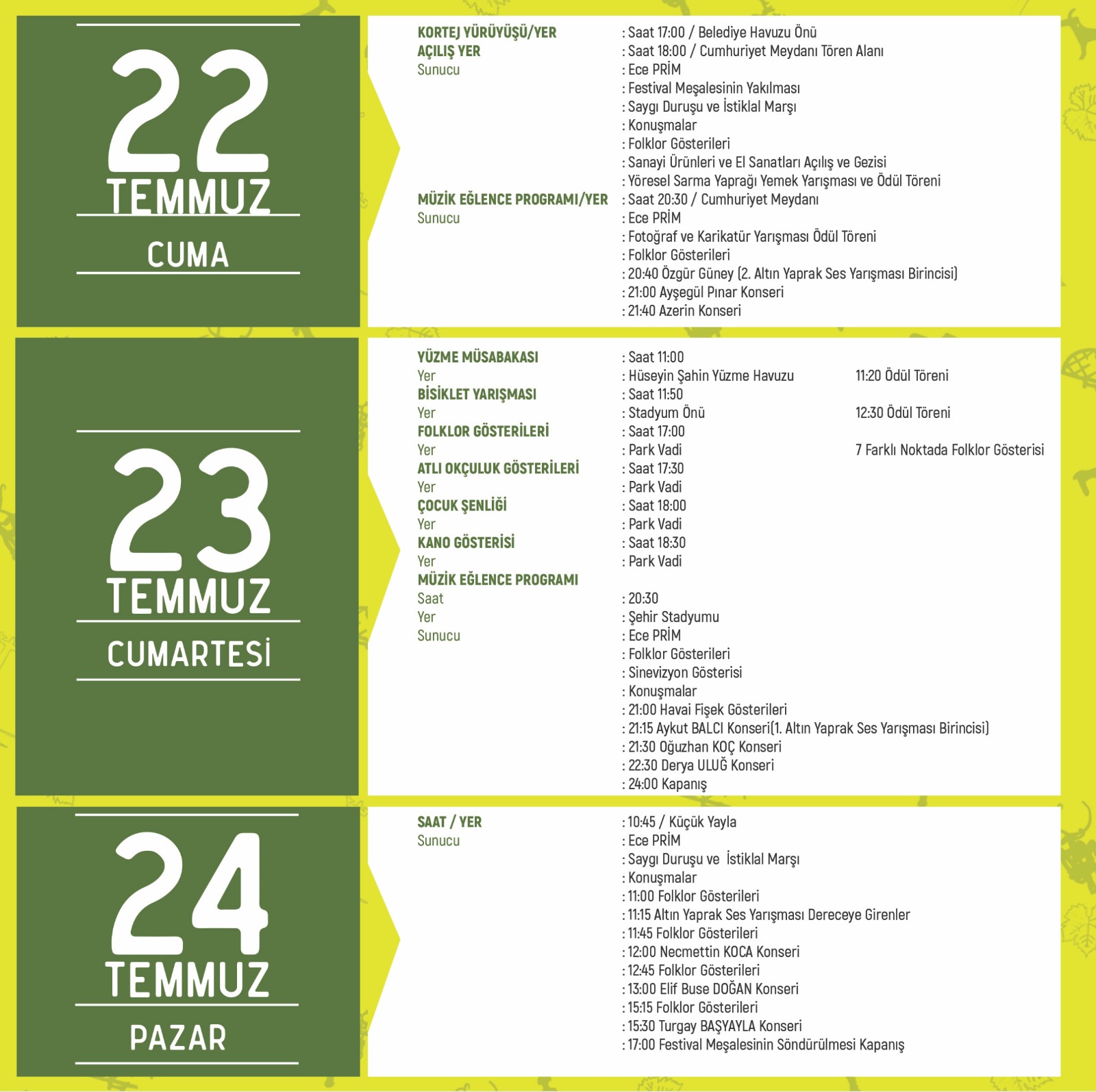 22. Uluslararası ve Geleneksel Yaprak Festivalimizin hazırlıkları tamam. 22 Temmuz'da başlayıp 3 gün sürecek festivalimize bütün hemşehrilerimizi heyecanla bekliyoruz.
