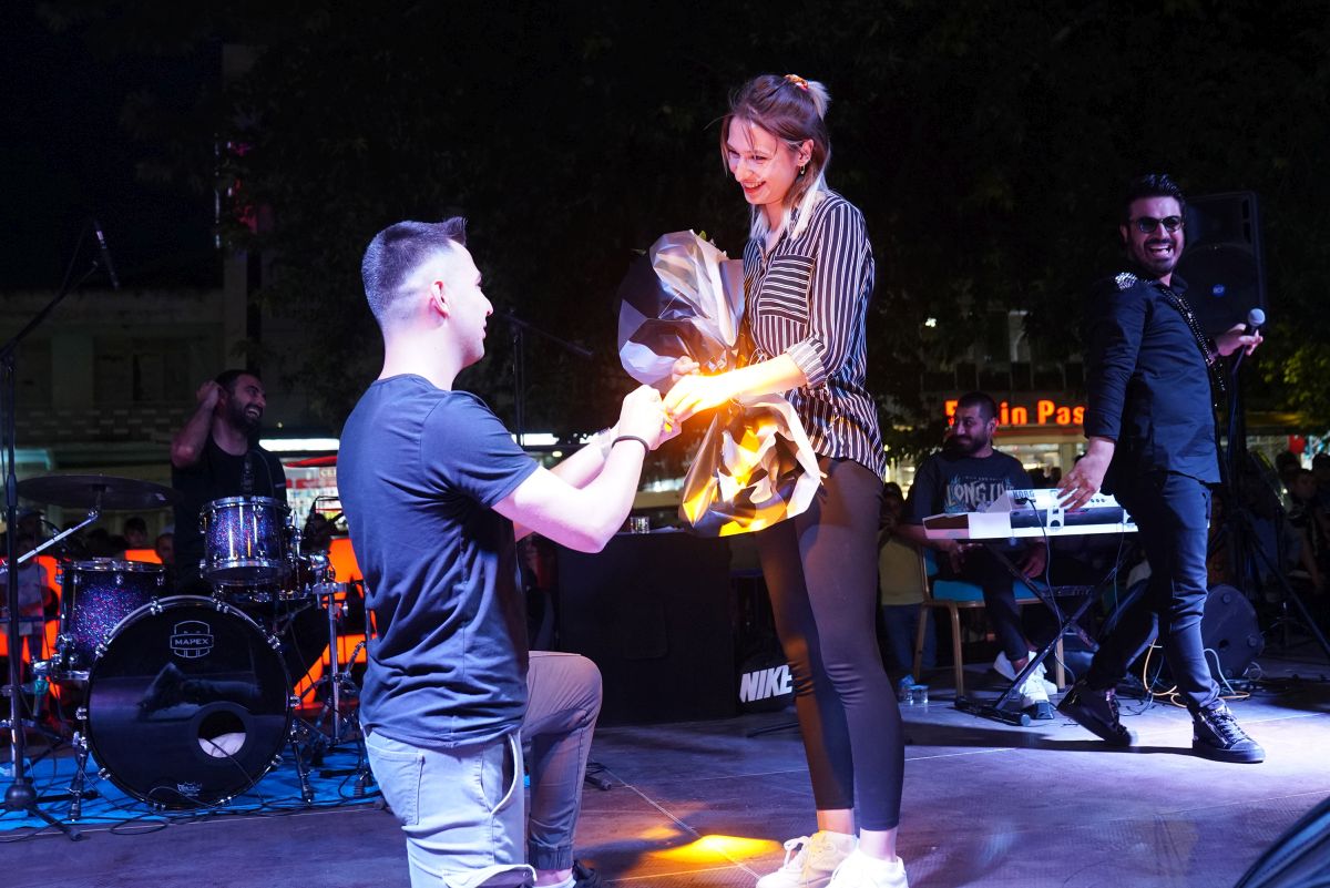 Erbaa Gençlik Konserinin 2’incisi Ferah Zeydan ile Turgay Saka’nın katılımıyla gerçekleştirildi. Erbaa Belediyesi LGS sınavına katılan ve önümüzdeki hafta YKS girmeye hazırlanan gençler için konser düzenledi. Pandemi süreci sonrası ilk kez gerçekleştirilen konsere Ferah Zeydan ile Turgay Saka katıldı. Meydanı dolduran gençler sanatçıların söylediği şarkılara hep bir ağızdan eşlik ederek doyasıya eğlendi. Turgay Saka’nın konseri sırasında Burakhan Subaşı kız arkadaşına sahnede evlilik teklifinde bulundu. Turgay Saka’nın ismini okuyup Gençlik Meclisi adına konuşma yapması için çağırdığı Esma Konyar’ın arkasından sahneye çıkan Burak Subası kız arkadaşına evlilik teklifinde bulundu. Esma Konyar erkek arkadaşının evlilik teklifini kabul etti.