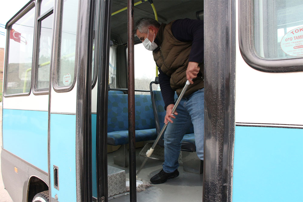 Koronavirüsün Türkiye’de görüldüğü günden bu yana hiçbir şoförlerinin koronavirüse yakalanmadığını ifade eden Şehir İçi Minibüsçüler Kooperatifi Başkanı Hakan Kılıç “Arabalarımızda dezenfektanlar var. Bildirimler asılı. Belediye her hafta gelip ilaçlıyor araçlarımızı. Turlardan gelince elimizi yıkıyoruz. Arabaları temizliyoruz. 32 tane şoförümüz var. Hiçbirimizde Allaha şükür öyle bir şeye rastlanmadı. İnşallah bundan sonra da rastlamayız.” dedi.